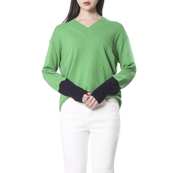 따뜻한 컬러감에 V 네크라인과 자수 디테일로 포인트를 준 심플한 스웨터 입니다. 소매 부분과 밑단 부분에 배색의 컬러감이 세련된 감성을 더한 아이템 입니다.