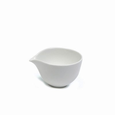 - 5.5-inch porcelain mixing bowl with pouring spout