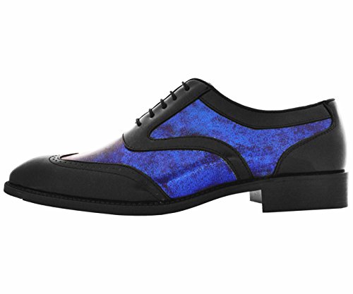 Product DescriptionBolano Mens Classic Two Tone Royal Blue Metallic and Black Smooth Wingtip Oxford Tuxedo Dress Shoe : design Lawson-0520