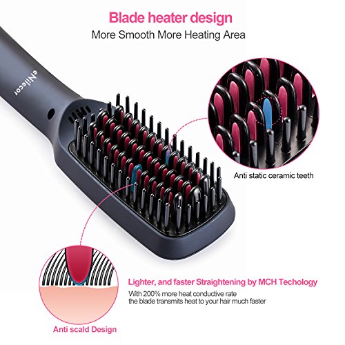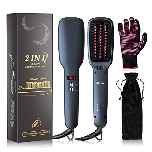Straightening Brush, eNilecor Ceramic Ionic Hair Brush Straightener Heating Anti-scald, Adjustable Temperature, Free Heat Resistant Glove (Black)