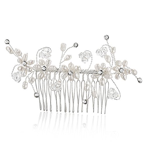 Freshwater Pearls Floral Rhinestone Crystal Bridal Wedding Tiara Hair Comb FC046