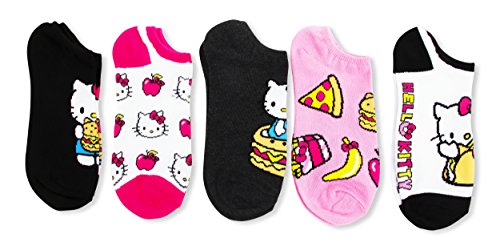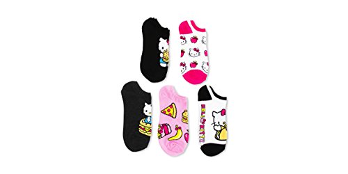 Hello Kitty Women's 5 Pack No Show Socks, White Assorted, 9-11