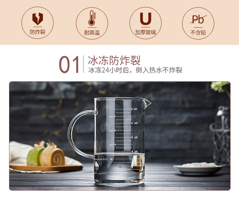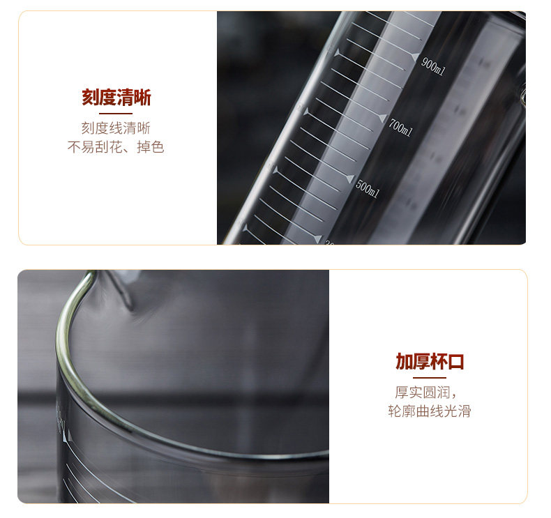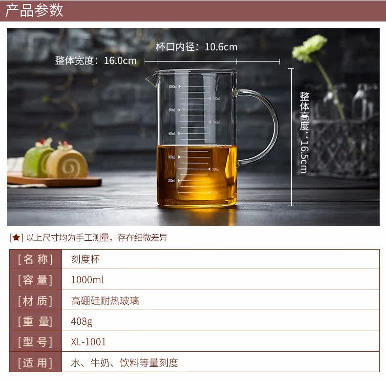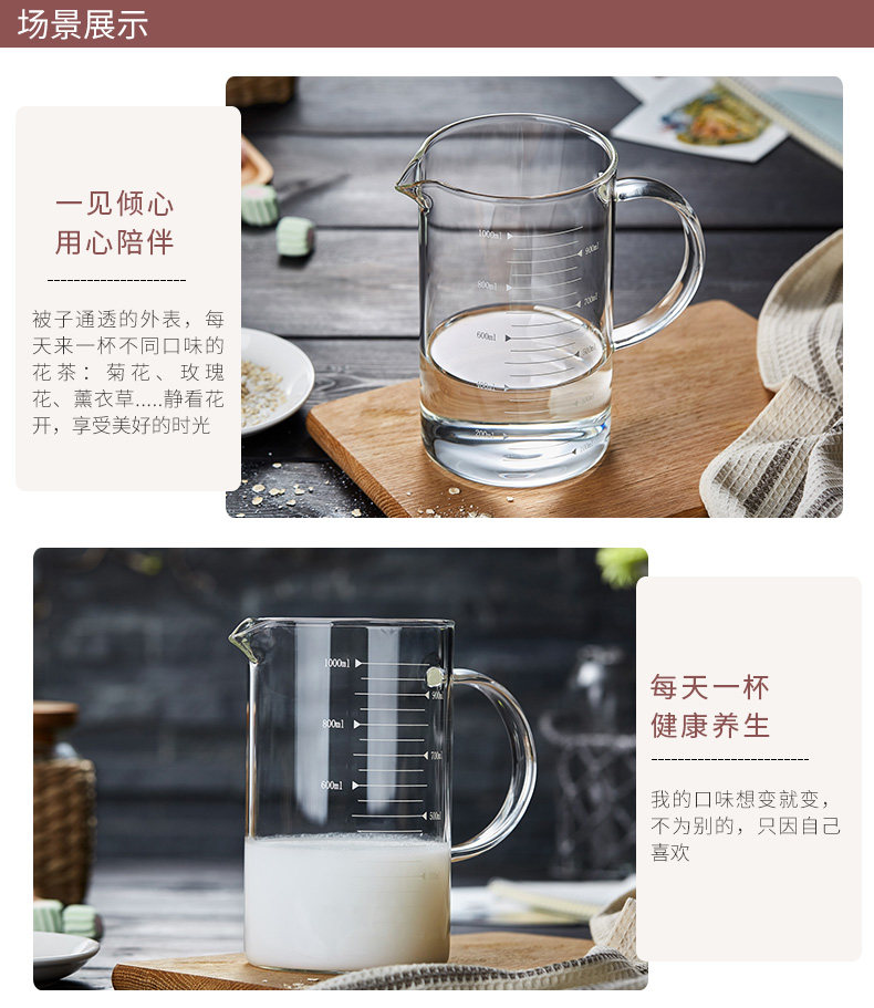 玻璃量杯带刻度加厚耐高温刻度杯牛奶杯1000ml
