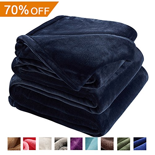 Fleece Bed Blanket Super Soft Warm Fuzzy Velvet Plush Throw Lightweight Cozy Couch Blankets Queen(90-Inch-by-90-Inch)Royal Blue