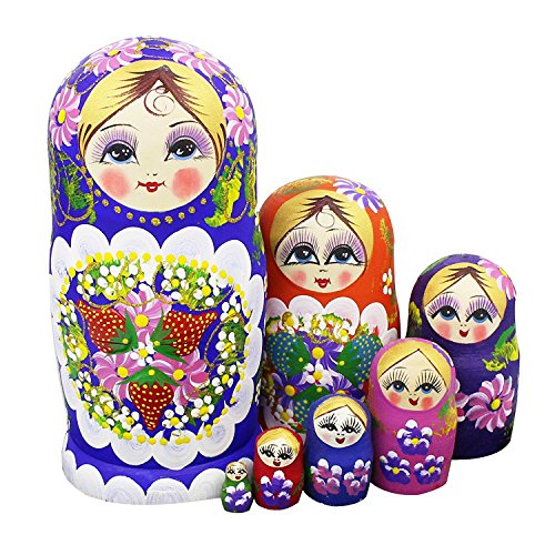 -. Feature : Cute Handcrafted Handmade Russian Nesting Dolls / Contains 7 nesting dolls. The largest one is around 7.8" High / Housewarming gifts. Cute Colorful Girl style. Flower and Berries Pattern. Children's toys. / Dolls with decreasing size placed one inside the other. Perfect for Mother's Day and new baby gifts / Russian nesting dolls make wonderful gifts, and are traditionally given on many kinds of special occasions.