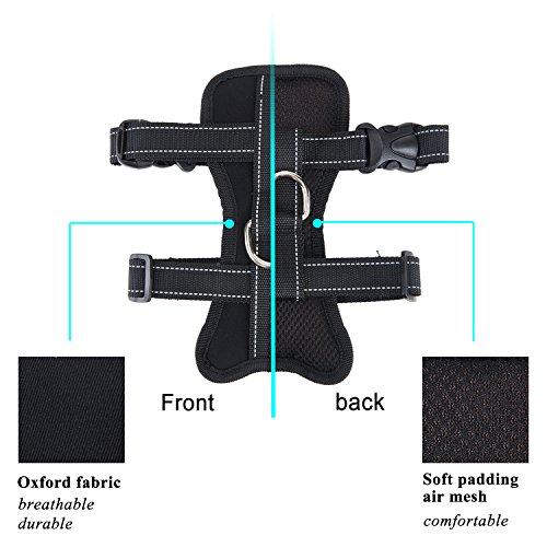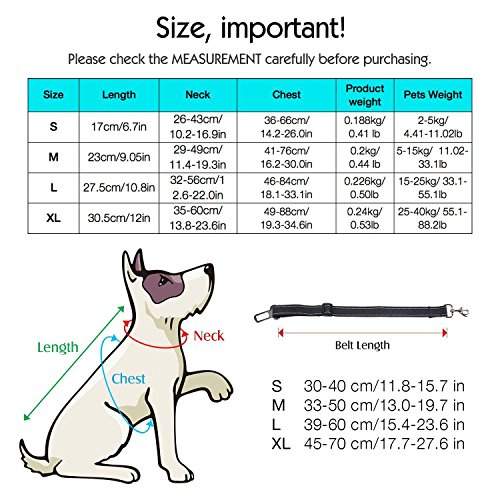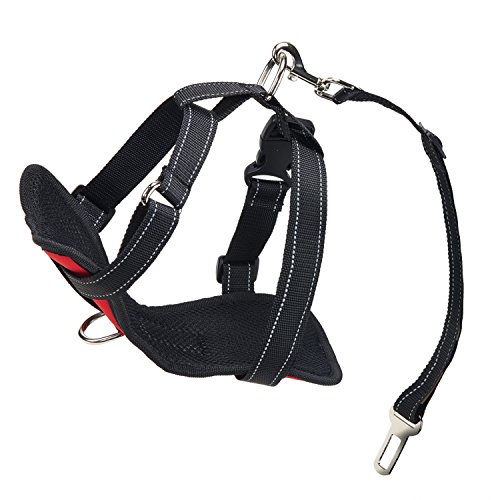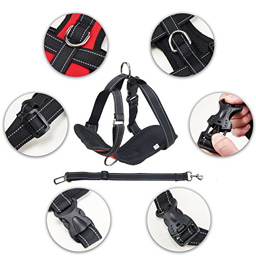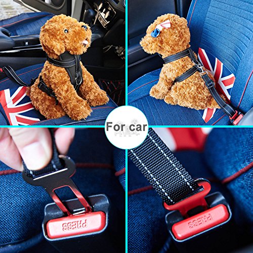 -. Feature : Safety vehicle harness: This car safety harness can connect to seat belts with the seat belt attachment loop hook quickly and eaily, making your dog safely restrained and secure. / Soft & Comfortable Material: Breathable Mesh Chest Vest Harness, made of oxford fabric, lining for the elastic sandwich mesh, durable and lightweight keep your dog comfortable / Easy Handling & Comfort : The sturdy carabiner is attached to dog harness, the other end is snapped in like a conventional harness. Thanks to the possibility of the length adjustment, your dog has optimal freedom of movement, without becoming a danger of being able to get hurt. / Easy to Use and Quick Release: There are four buttons on the harness strap can be easily adjusted to make your dog pals feel comfortable, which is suitable for small, medium dogs or even kitten cats and medium cats. / Multi-purpose : also used as a dog easy walking harness, suitable for outdoor use to gently walk your dog without choking feeling.