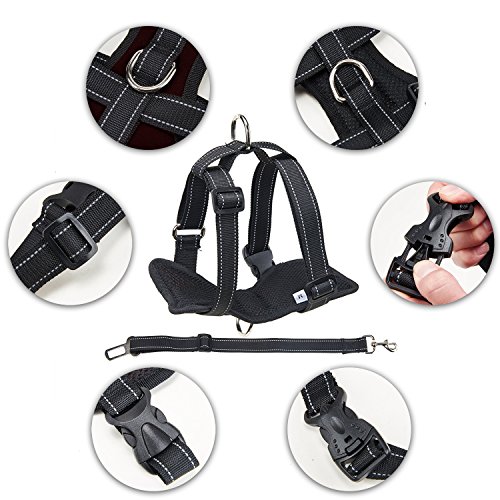 -. Title : Pettom Dog Safety Vest Harness Adjustable Dog Walking Harness Car Safety Vehicle Harness Travel Strap Vest with Car Seat Belt Lead Clip