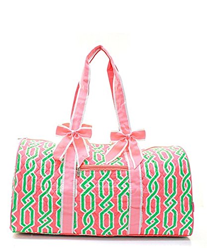 -. Brand : J&C Family Owned -. Color : Multi -. Department : unisex-adult (lage only) -. EAN : 0792481205141 -. Feature : Family Owned/Operated, US America Seller, Quick Shipping / Quilted Duffle Bag / Can be monogrammed after purchase / Great Bag for any purpose / Size: 20 "L X 11 "D X 11 "H -. NumberOfItems : 1 -. ProductGroup : Apparel -. ProductTypeName : LAGE -. Size : One Size -. Title : J&C Vine Monogram Ready Quilted 20" Duffle Bag -. UPC : 792481205141