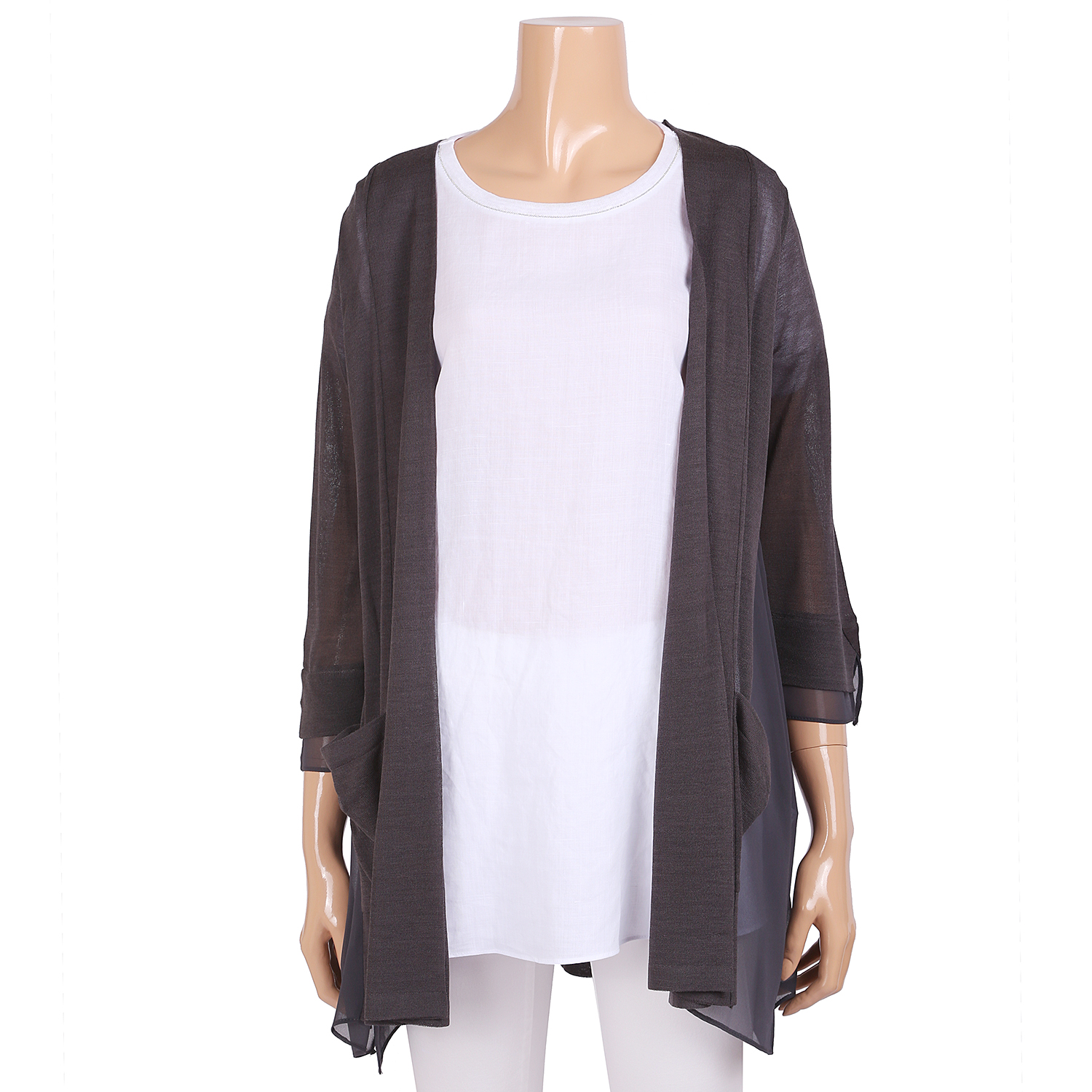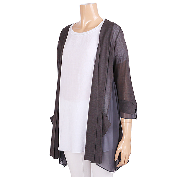 부드러운 옆선,소매끝단의 쉬폰이 포인트입니다