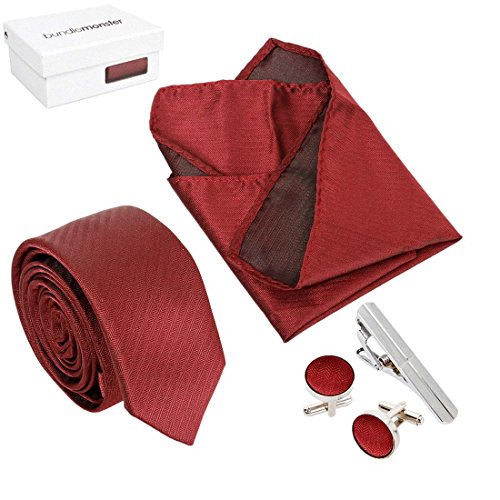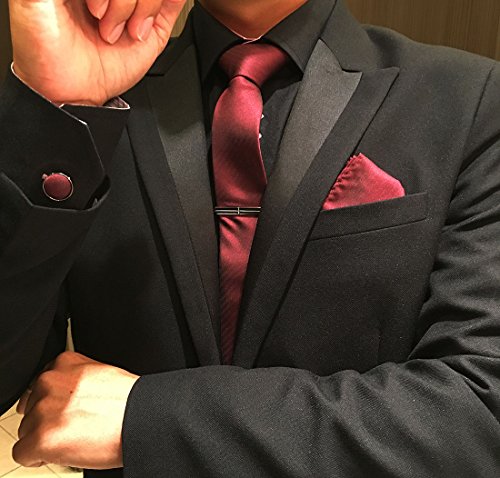 Bundle Monster Mens Fashion Necktie Cufflinks Tie Bar Pocket Square Combo Set