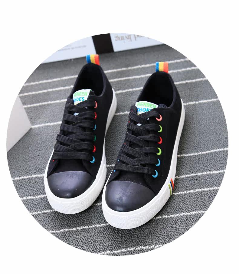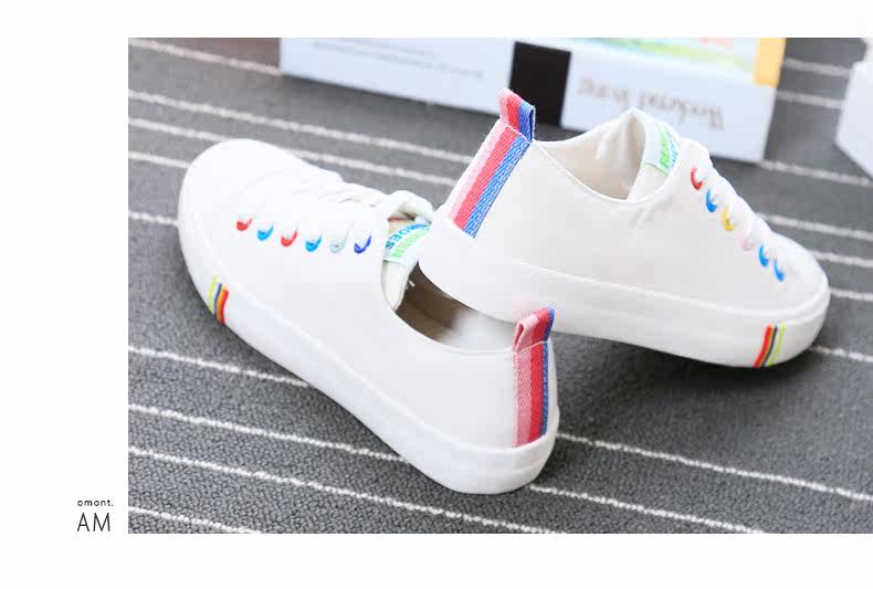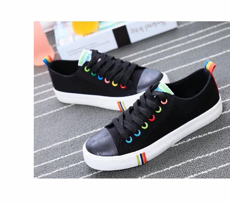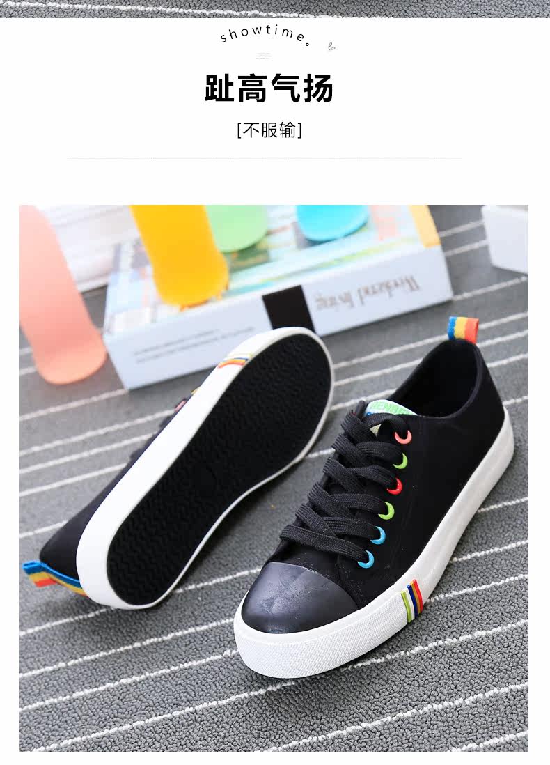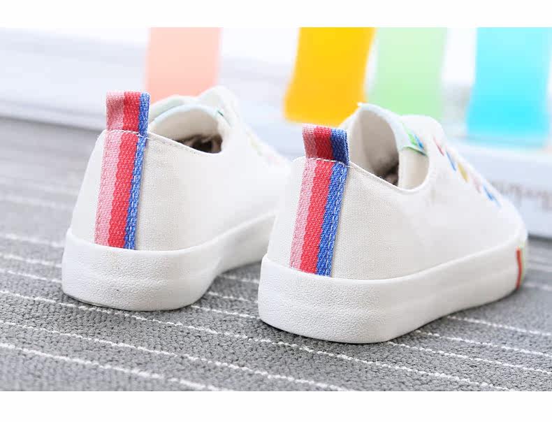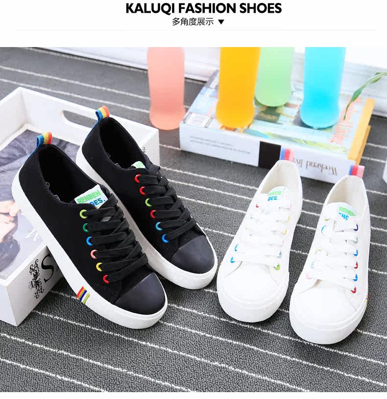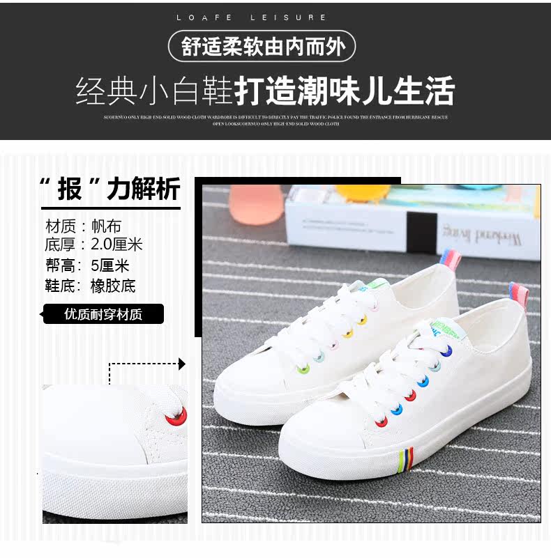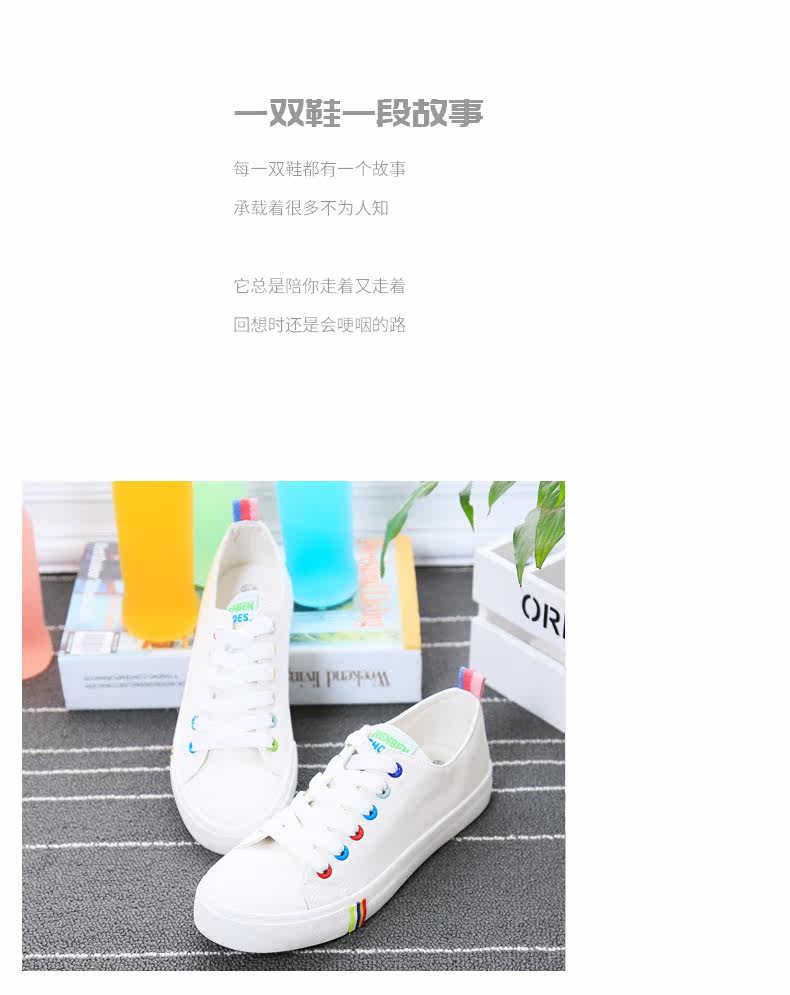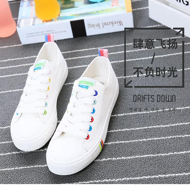 帆布鞋女秋季平底韩版纯色经典小白鞋系带布鞋学生鞋休闲鞋