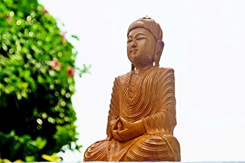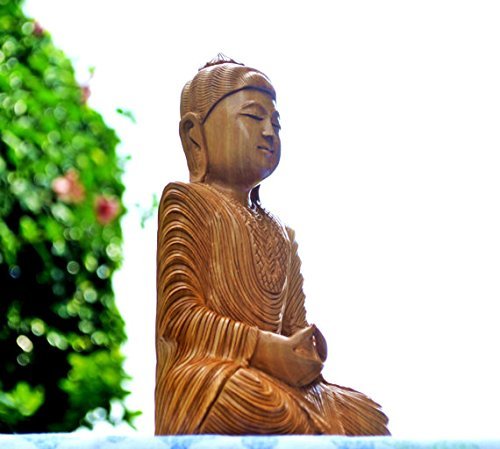 Serene and calming, made of Solid natural wood, this large Buddha statue is intricately hand carved . This buddha statue have artistic carved details on all sides.