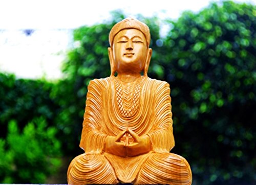 CraftVatika / Meditating Buddha Mudra Wooden Lord Buddha Statue/Figurine - Hand-Carved Kadam Wood 6 Inch Buddha Sculpture - Spiritual Gift for Boss - Home / Office / Restaurant Decoration (6" Height)