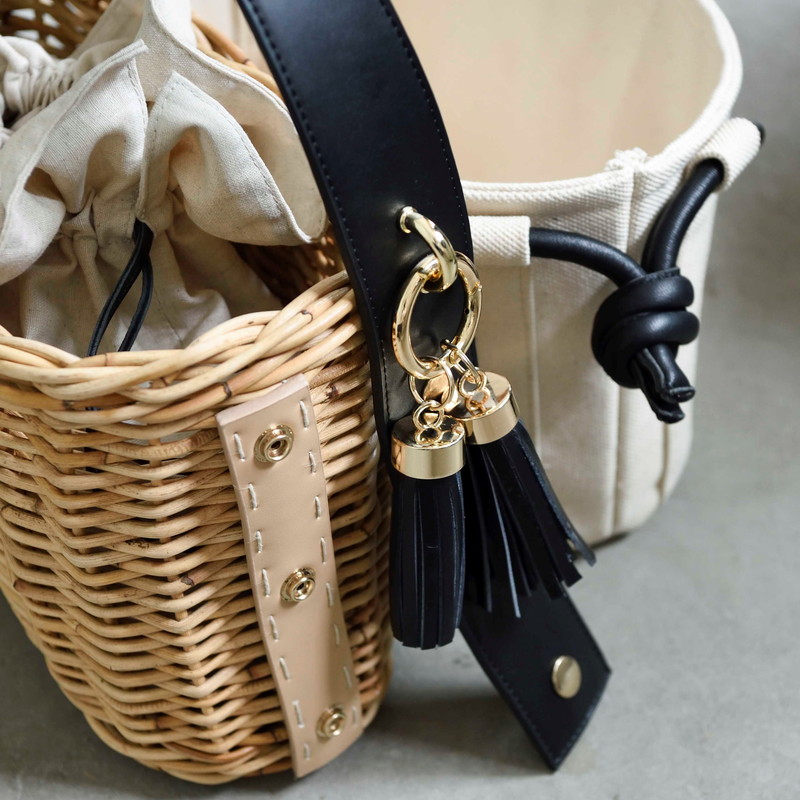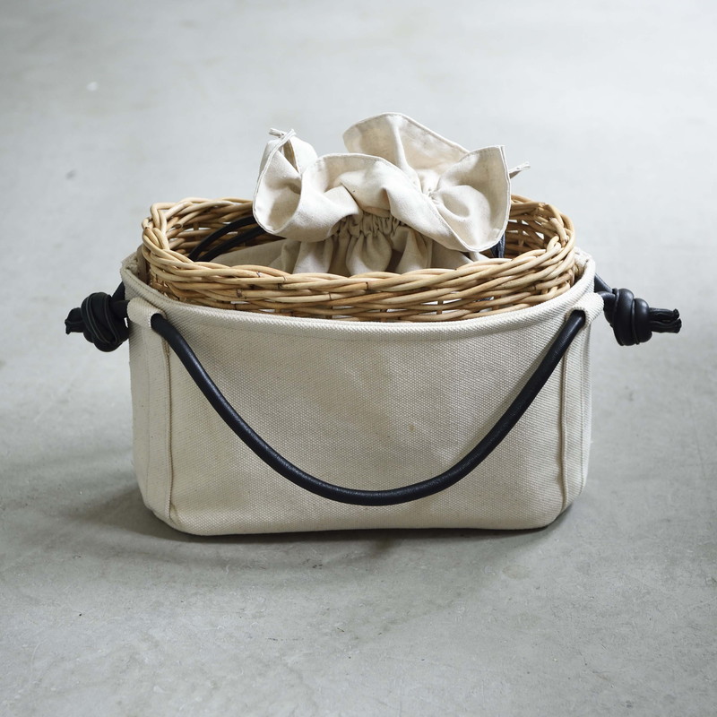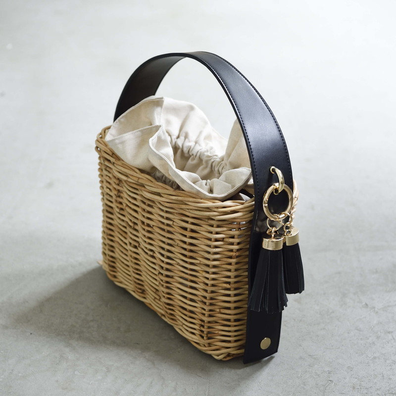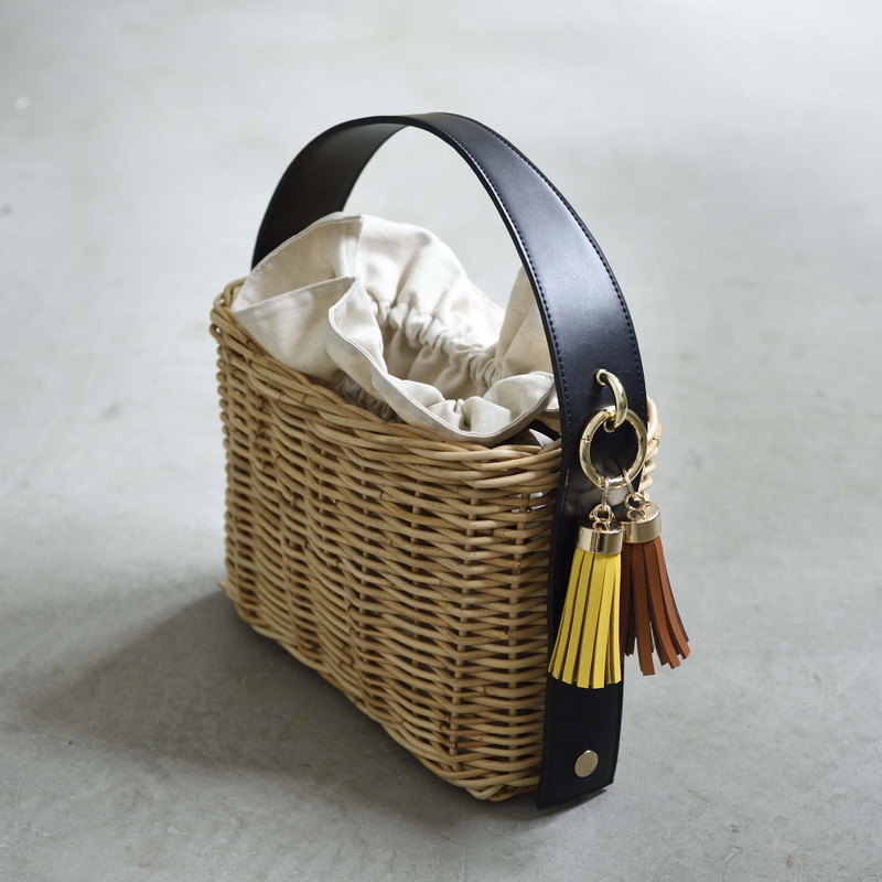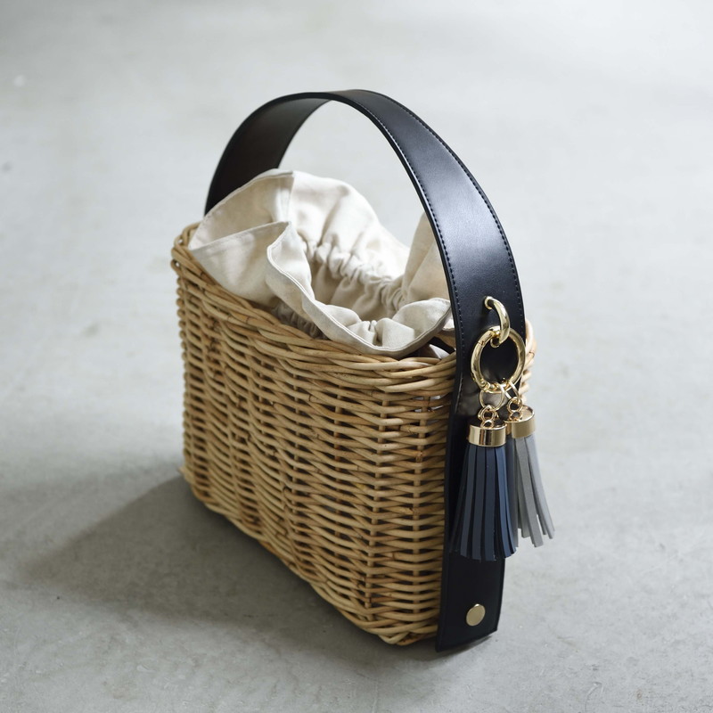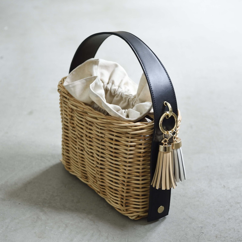 [ Rectangle-Basic ]AMONGOUT の象徴でもあるラタンバッグ、2018年 春夏は4種類の形をご用意しました。こちらの形は、初代から人気で毎シーズン問い合わせの多い、四角型のベーシックなサイズを新たなデザインで復活しました。容量もしっかり入り、形も使いやすいアラログのラタンバッグに、上質な帆布のバッグを被せて使用できるデザインとなっております。帆布バッグを外して付属の革ベルトの持ち手に付けかえれば、かごバッグだけでも使用可能なので、春夏らしい涼しげな印象でお使い頂けます。革ベルトには、タッセルチャームを取り付け可能です。帆布バッグには、太めで高級感のある羊革のロープ状の持ち手がついており、中袋を入れ替えて帆布バッグのみでもご使用頂けます。中袋には内ポケットもついており機能的で、巾着部分の紐も羊革を使用し高級感のある仕様となっております。※今シーズンから、ラタンバッグの持ち手の革ベルトが全型共通のサイズとなりました。他のデザインのお色の違う持ち手を付け替えたり、来シーズン以降の持ち手を取り付けることも可能となります。[サイズ]本体:W30cm × D14cm × H20cm底面:W26cm × D11cm[商品の特性について]AMONGOUTの商品は天然素材でつくられているため、商品によって色合いやサイズが若干異なる場合がございます。1点1点、心を込めて職人さんの手作業でお作りしております。繊細な作りとなっておりますのでご了承にの上、ご購入下さい。