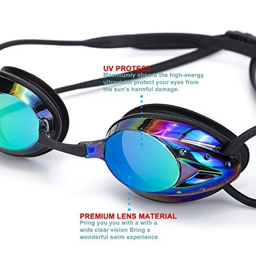 ▼100% UV PROTECTION, ANTI-FOG COATING, ANTI-SHATTER LENSES, MIRROR COATED LENSES - The coated lens using high quality imported PC material can anti-shatter. The lenses are covered with a layer of anti fog coating effective UV protection and protect your eyes from heat and damage of the sunrays, make your vision clearer especially when you swim outdoors. The uv protection swimming goggles to bring you top uv protection. No longer have to worry about the eyes will be burned in the hot sun.