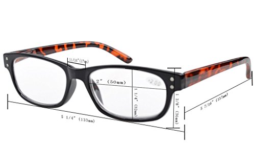 -. Brand : Eyekepper -. Feature : PRODUCTS DIMENSION-Frame material: plastic,Lens width: 2" (50mm),Frame width: 5 1/4" (133mm),Lens height: 1 1/4" (32mm),Frame height: 1 3/8" (36mm),Bridge (DBL): 11/16"(17mm),Temple length: 5 7/16" (137mm),Spring hinge: Yes,,Lenses: Aspheric,Head size: Narrow to Medium. Rx-able frame. / EYEKEPPER SPRING HINGE VINTAGE READING GLASSES-the pupil distance(PD) is 59-63mm,the deviation for pupil distance(PD) less than 2mm,the deviation for strength less than 0.02,the deviation for lenses's horizontal line less than 1mm / EYEKEPPER MENS READING GLASSES-5 pack at 1 Low Price,Sets come in 1 power of your choice.These are not mixed powers.Classic-shaped frames, look good on any face. Spring-hinged temples, help glasses fit your face.Tinted lenses - great for outdoor reading / QUALITY PLASTIC FRAME -FDA Registered Reading Glasses and Eyewear,Accord with ANSI Z80.3-2010,Accord with BS EN ISO 12312-1:2013 and EN14139:2010,Accord with AS/NZS 1067:2009,Top quality plastic frame,lenses and have spring-loaded hinges / LIFETIME BREAKAGE WARRANTY&30 DAY MONEY BACK GUARANTEE: In case any broken problem happens, contact the seller of Eyekepper without hesitation to solve the problem until satisfaction. Eyekepper provides lifetime after sale service for all Eyekepper reading glasses. Customers can return and get refunded for any reason. You have no risk to try -. Label : Wenzhou Cofly Optical Co.,Ltd -. Manufacturer : Wenzhou Cofly Optical Co.,Ltd -. ProductGroup : Health and Beauty -. ProductTypeName : PERSONAL_CARE_APPLIANCE -. Publisher : Wenzhou Cofly Optical Co.,Ltd -. Studio : Wenzhou Cofly Optical Co.,Ltd -. Title : Eyekepper 5-pack Spring Hinges Vintage Reading Glasses Includes Sunglasses Readers