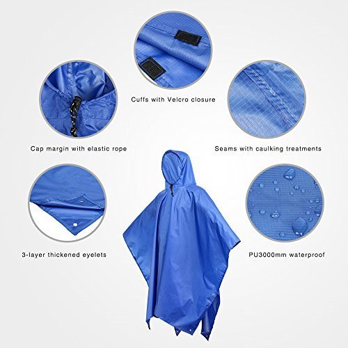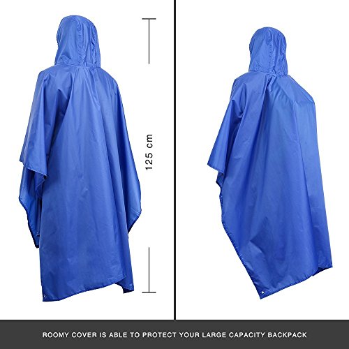 3-IN-1 Rain Poncho: Multi-Purpose poncho is specially designed for outdoor activities; It can be used as a poncho, backpack cover, or even a picnic blanket and more.