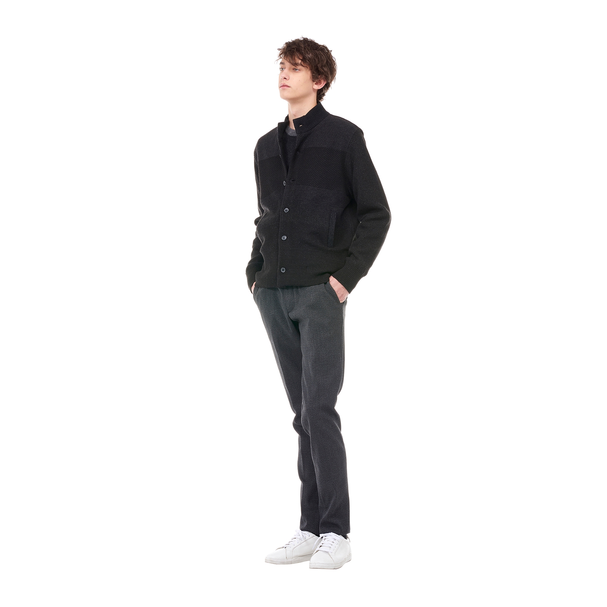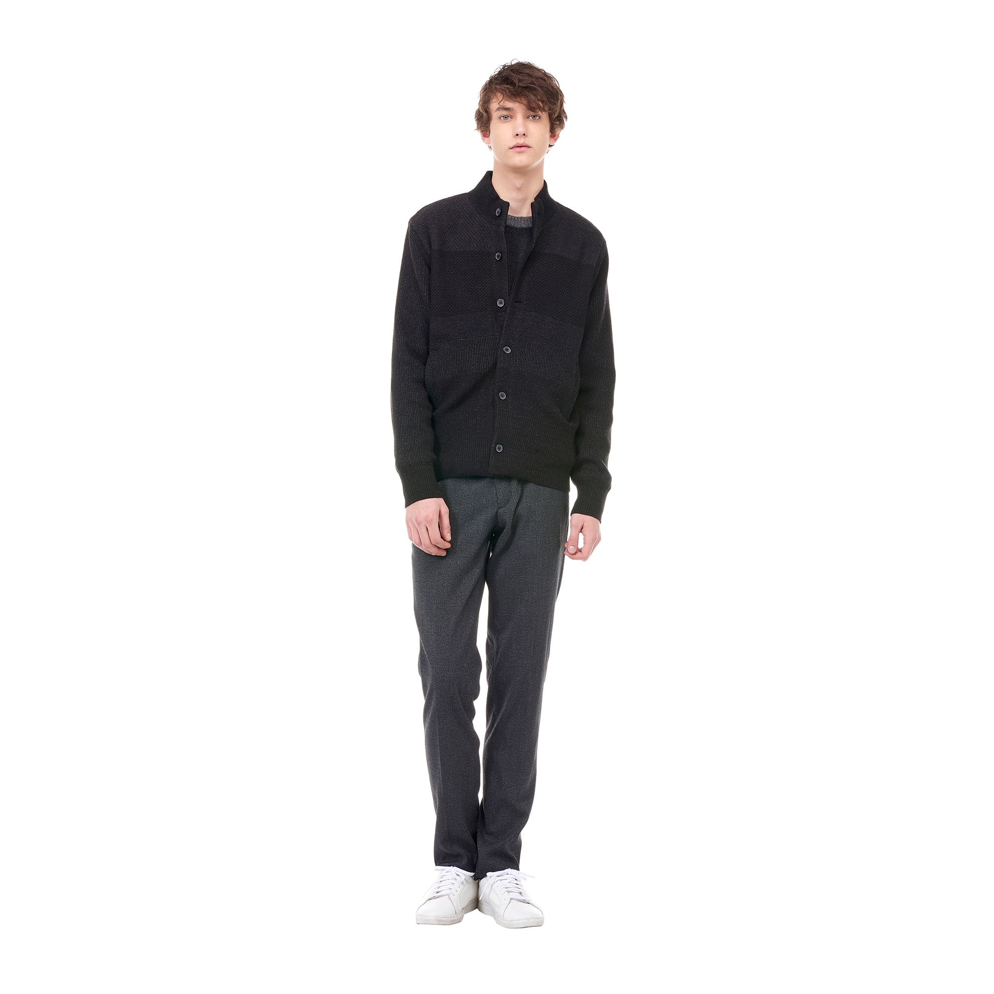 컬렉션 : 2017 Fall/Winter 디자인 포인트 : - 표면의 조직물 디테일이 캐주얼한 느낌을 주는 블랙 컬러 스타디움 스타일 가디건- 버튼 클로징 디테일이 깔끔한 느낌을 주는 디자인- 톤온톤 컬러 배색으로 포인트를 더한 트렌디한 아이템- 베이직한 핏과 디자인으로 다양하게 활용도 높은 상품 스타일링 추천 : 베이직한 니트웨어 혹은 셔츠와 치노팬츠에 데일리 아우터로 스타일링 할 수 있음