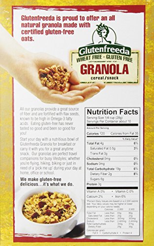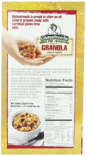 Glutenfreeda's Granola is made from wholesome, natural ingredients including certified gluten-free oats and flax seeds. Our granola is authentic tasting because it is authentic, no artificial ingredients or substitutions and therefore, our Granola appeals to everyone, gluten-intolerant or not, the perfect cross-over product. This delicious, traditional style granola is an ideal breakfast cereal or a great anytime snack. We make gluten-free delicious...it's what we do. All our products are produced in our own 100% gluten-free facility.Feature