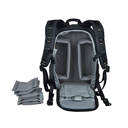 The padded insert camera partition comes with 8 removable and adjustable Velcro taped cushions. It can be constructed into many small partitions, each of which can house a standard zoom lens. The camera partition padded insert bag is anti-shock and separates your camera body and lenses with other belongings in your travel backpack