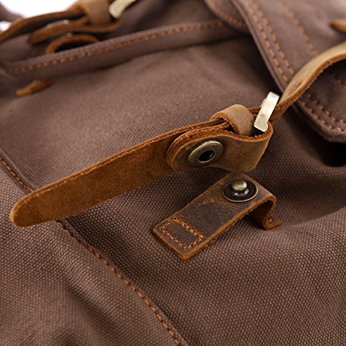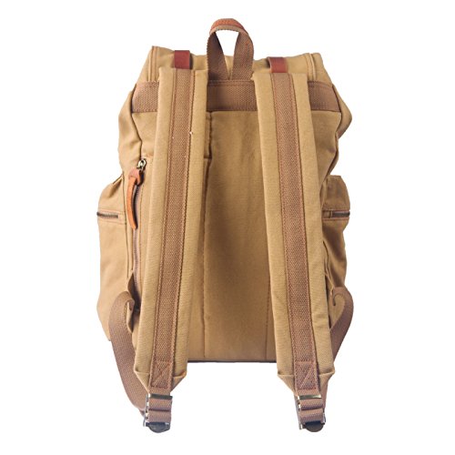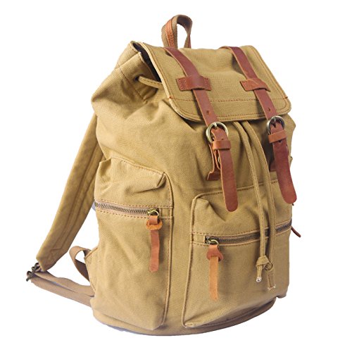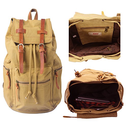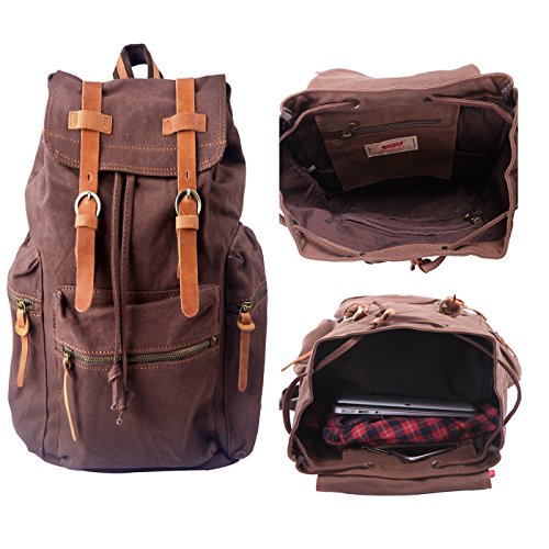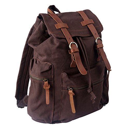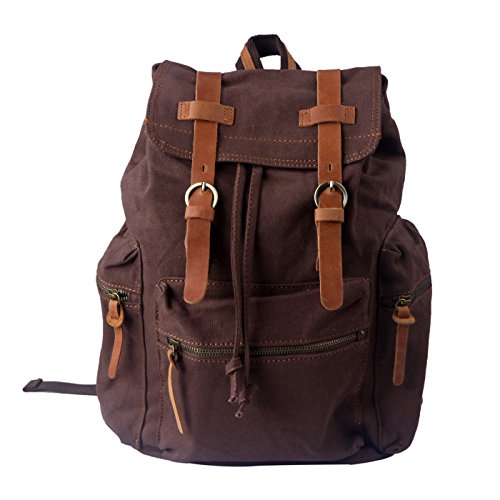 -. Brand : HDE -. Department : mens -. Feature : Classic canvas backpack with real leather accents and padded shoulder straps for comfort and style / Four zippered exterior pockets for smartphones, headphones, cables, valuables, and other daily essentials / Two internal velcro pockets can hold up to a 13" laptop or tablet / Drawstring closure and a secured top flap ensure your items stay secure / Internal Measurements: 17.8 x 12 x 6.5 inches | Capacity: 19L -. IsAutographed : 0 -. IsMemorabilia : 0 -. Label : HDE -. Manufacturer : HDE -. MPN : Canvas Backpacks -. PartNumber : Canvas Backpacks -. ProductGroup : Sports -. ProductTypeName : OUTDOOR_RECREATION_PRODUCT -. Publisher : HDE -. Studio : HDE -. Title : HDE Cinch Top Canvas Backpack Vintage Back to School Laptop Bookbag