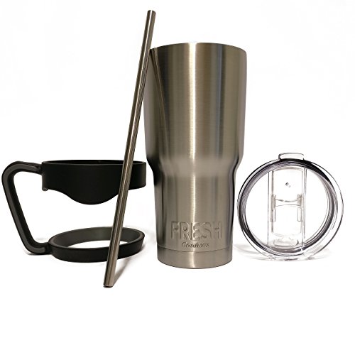 - FRESH COOLERS BUNDLE - Introducing Fresh Coolers Stainless Steel Tumbler with a Removable Carry Handle, Spill Resistant Slide Close BPA Free Lid, and 18/8 Stainless Steel Straw! Double Wall Vacuum Insulated - Guaranteed to keep Hot Drinks HOT and Cold Drinks COLD!
