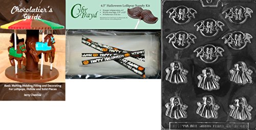 Cybrtrayd "Bite Size Bats and Ghosts" Chocolate Mold with Chocolatier's Bundle, Includes 50 Cello Bags and 50 Happy Halloween Twist Ties