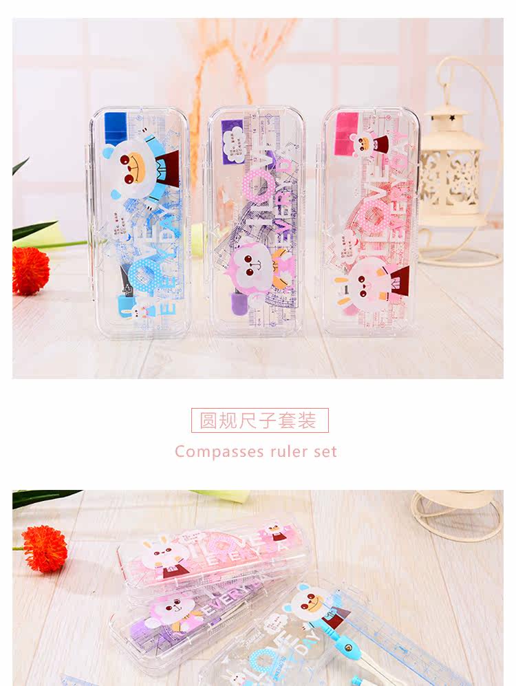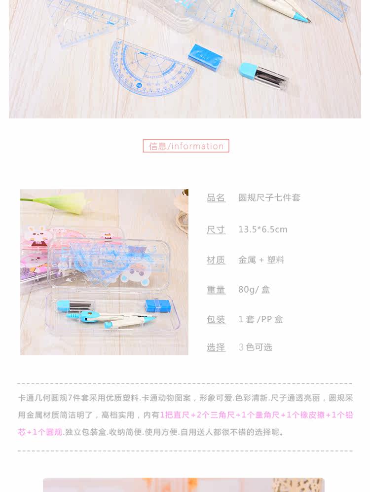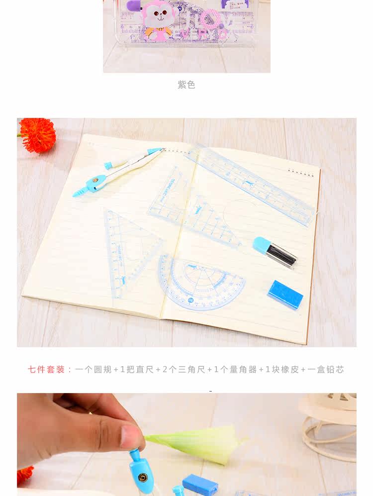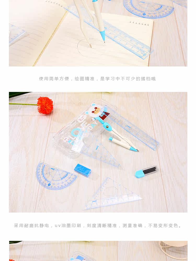 学生圆规尺子三角板套尺自动铅笔绘图工具考试文具8件套装