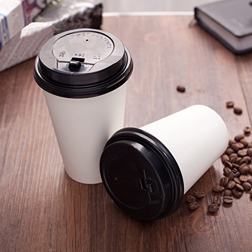 -. Feature : 50 white paper hot cups and plastic travel lids. / Convenient, economical and disposable. / Disposable cups makes clean up easy. / Great for serving coffee, tea, chocolate, and other cold beverages. / Forbid heat in the microwave.