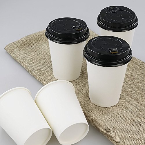 -. Title : Pekky 12 Oz White Paper Cups with Black Lids, Case of 50