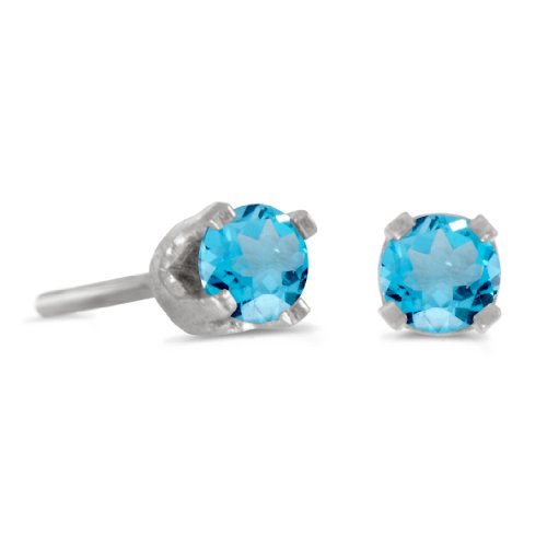 -. Title : 14k White Gold Round Blue Topaz Stud Earrings