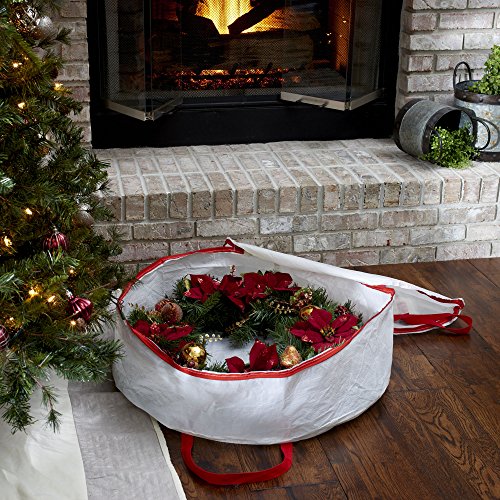 Household Essentials 2630 Heavy Duty Christmas Wreath Storage Bag with Red Trim | Holds Large Xmas Wreaths up to 30 inches