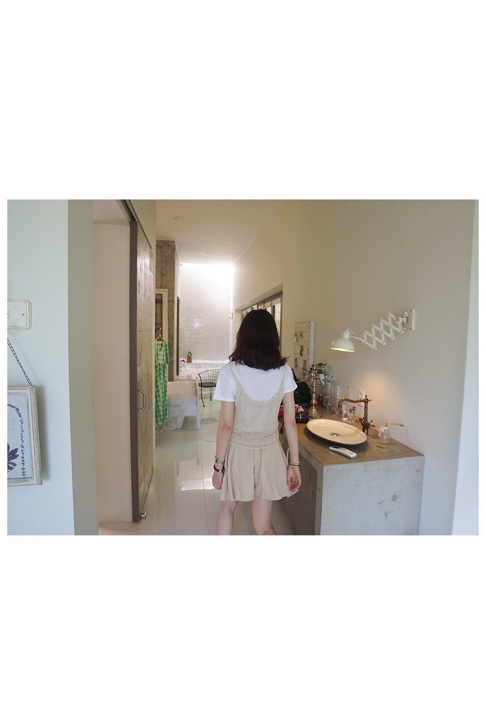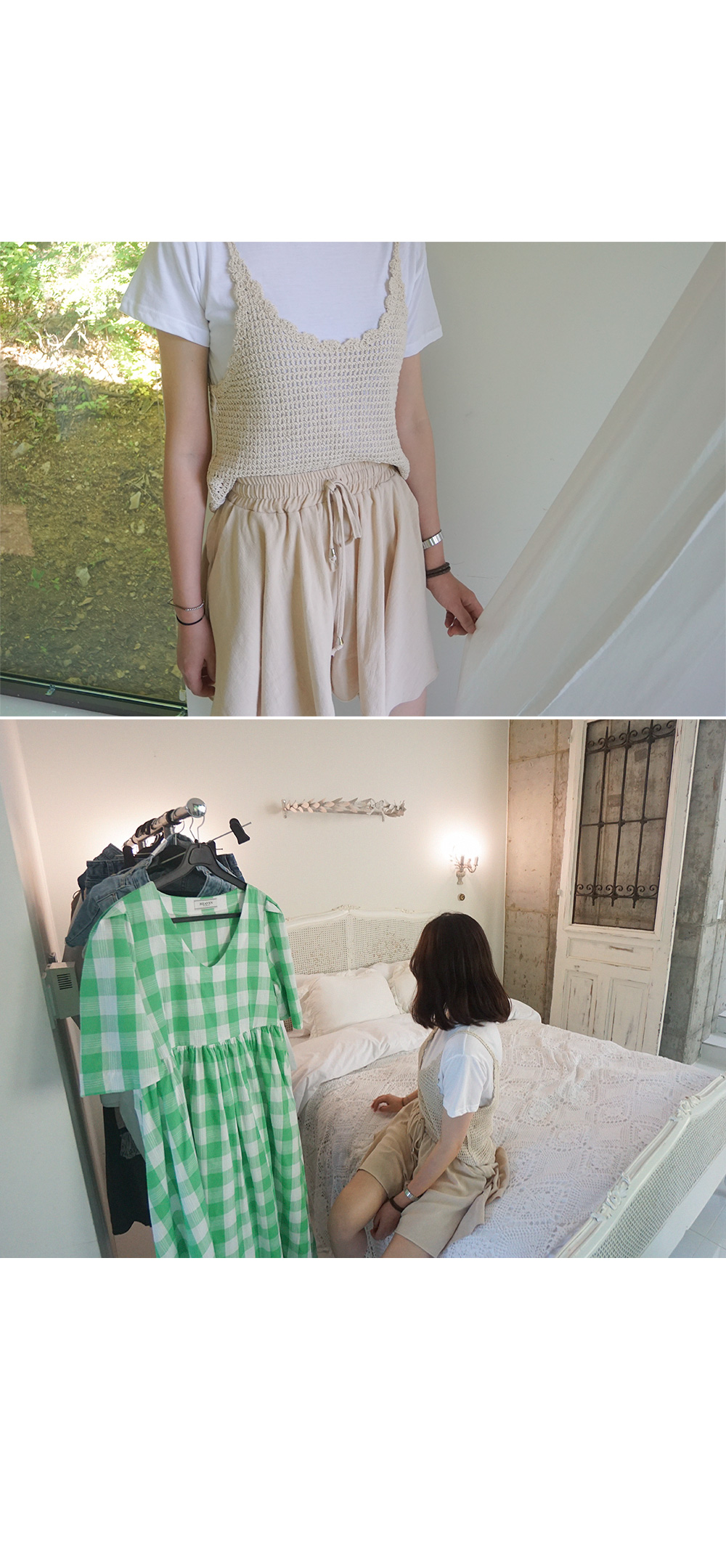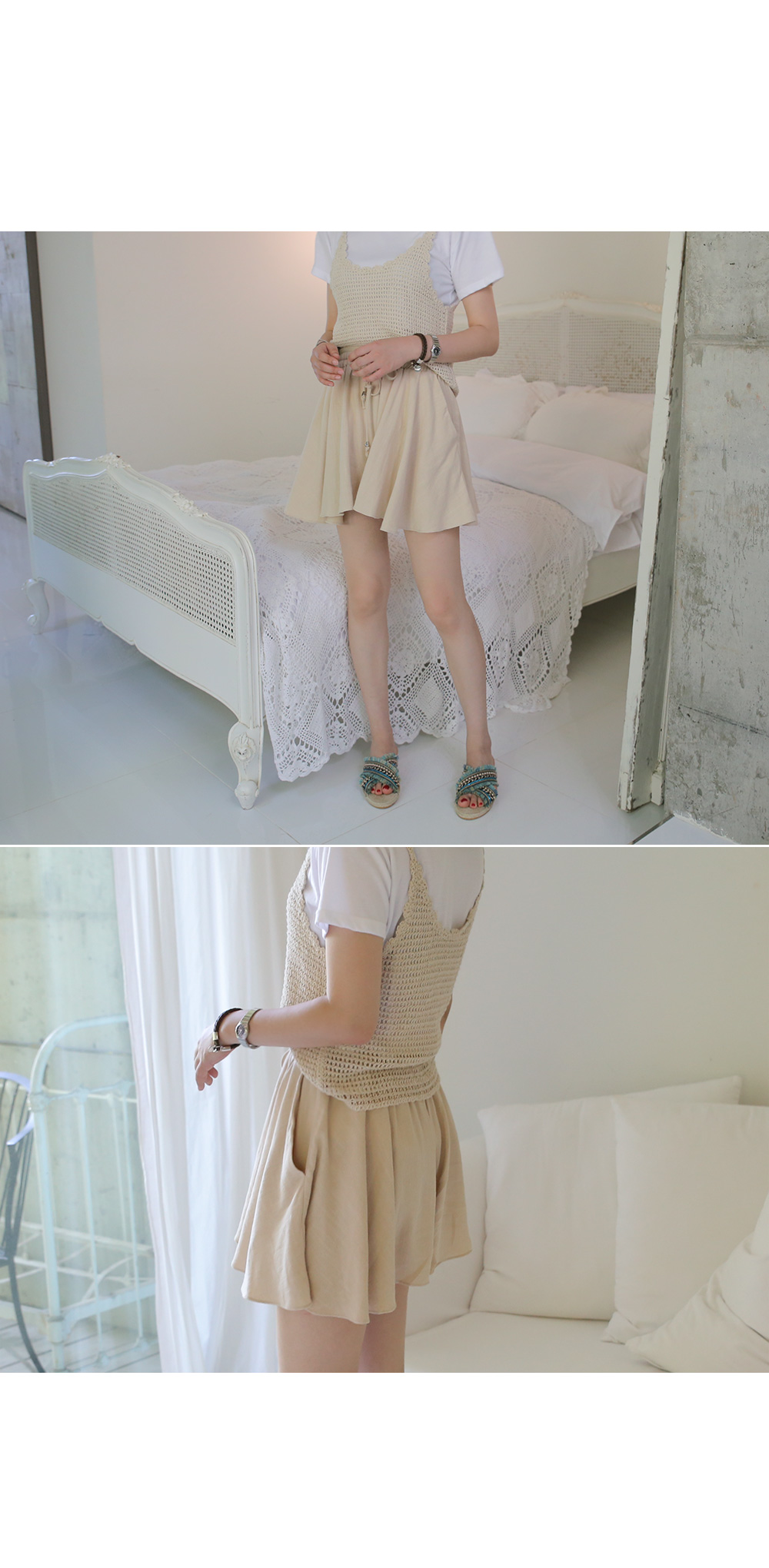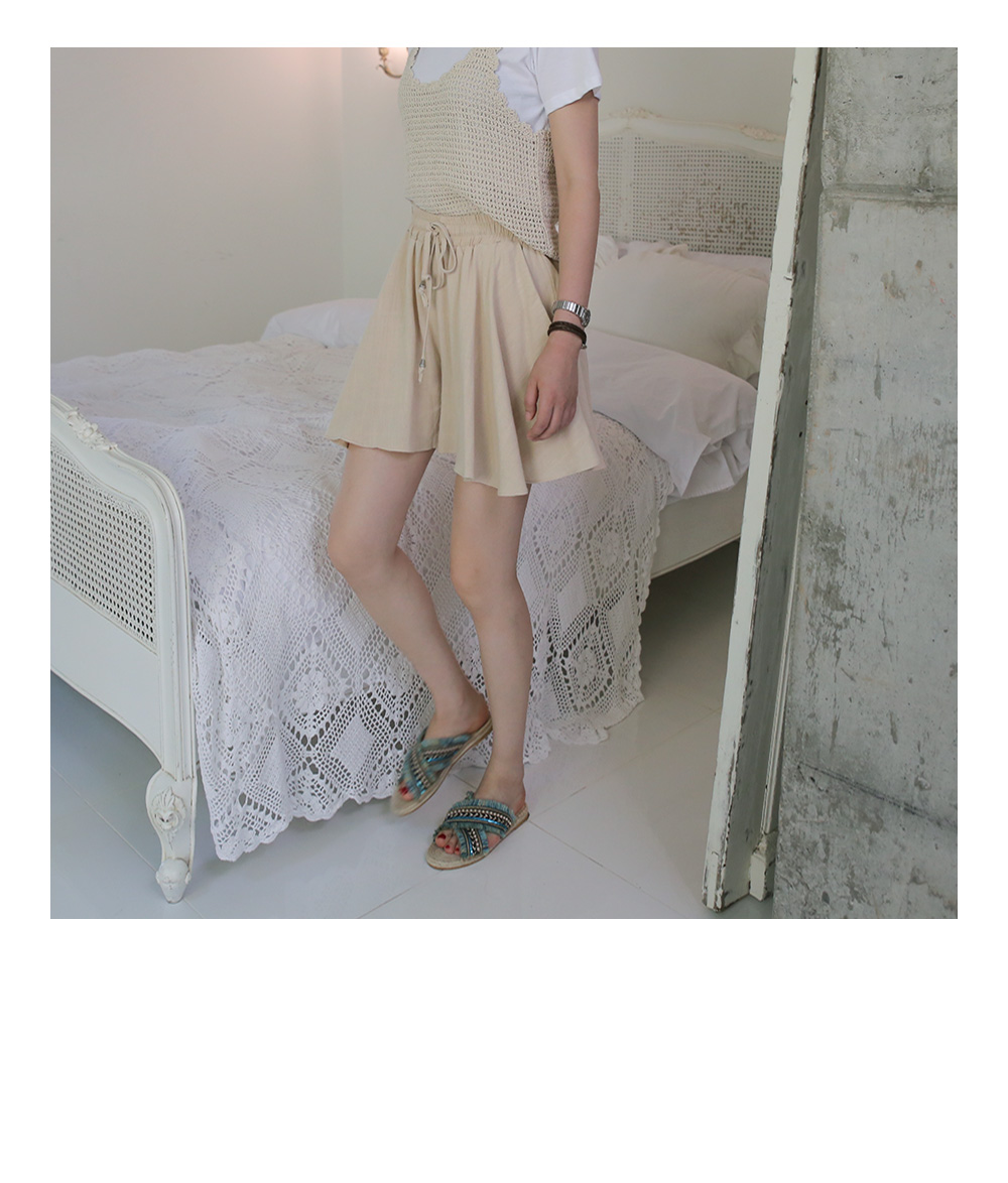 얇은 원단으로 살랑살랑한 핏이 나오는 치마바지예요 보통 일반 면이나 린넨 치마바지는 꾸깃꾸깃해지고, 둔탁한 핏으로 나오지만, 폴리 원단으로 구김도 적고, 딱 찾던 원단감, 딱 찾던 핏감 일꺼라고 생각해요