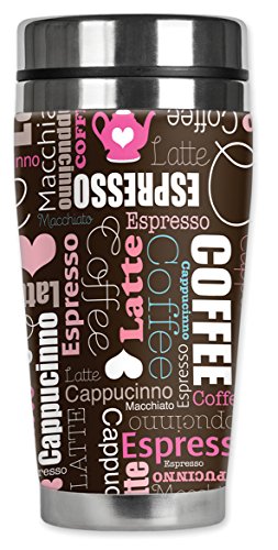 Mugzie 834-MAX "Coffee Montage" Stainless Steel Travel Mug with Insulated Wetsuit Cover, 20 oz, Black