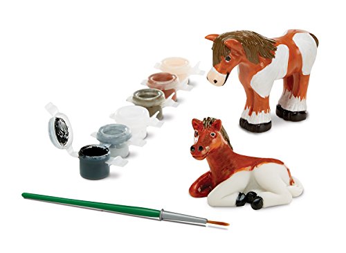 Have fun decorating this tender horse and its foal. This kit includes two ready-to-decorate, solid-resin horse figurines with 6 pots of colorful, non-toxic paint and an easy-clean paintbrush.