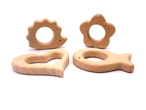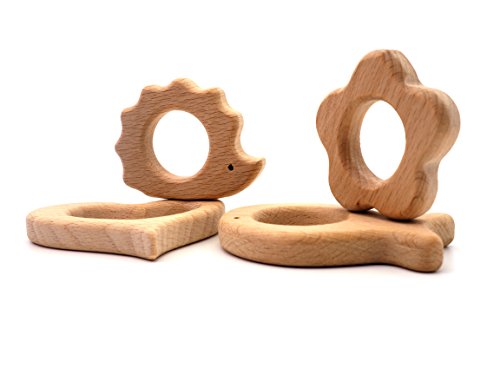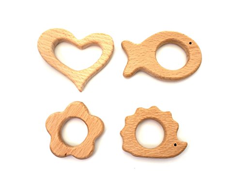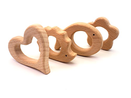 Creationtop Set of 4pc Wooden Teethers Handmade Wooden Heart