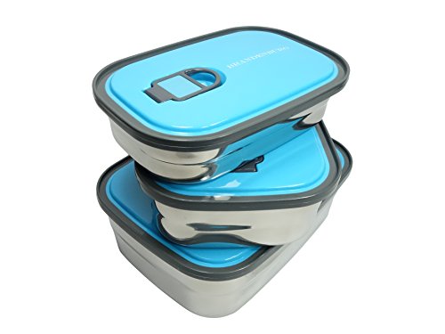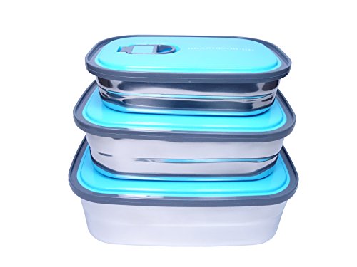 - •PERFECT SIZES AND DESIGN. Each set includes 3 different and perfect sized containers, ideal for nutritious lunches, picnic foods, camping meals, or even storing leftovers in the fridge.