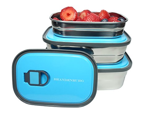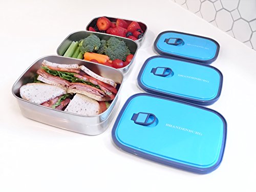 Brandenburg Super Leak Proof Lunch Box Set – Stainless Steel Food Containers – Airtight Bento Box for Kids & Adults – 100% BPA Free (Blue)