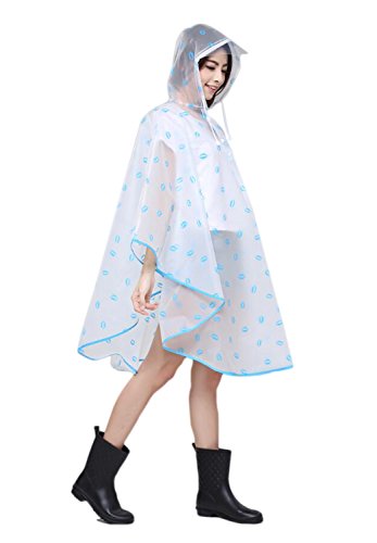 -. Feature : Made of 100% high quality waterproof EVA fabric,eco-friendly,breathable,non-toxic,no odor,durable and comfortable wearing,can't stimulate to your skin / One Size: front and back length about 39.4", side length about 24.8" / Adjustable draw cord at hood taped seams and snap fastener closure design,fully sheltered around your head to avoid getting wet when caught the rain or block wind / Fashion design with lipstick make you look quite cute in the rain,see through and lightweight rain poncho,not stuffy feeling / Folds easily to store anywhere,quick drying,designed with hood is great for any hiking,riding and other outdoor activities during the rainy or snowy day