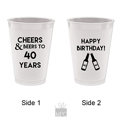 40th Birthday Frost Flex Plastic Cups - Cheers and Beers to 40 Years (10 cups)