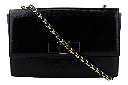 (SALVATORE FERRAGAMO.)/Accessories/Luggage, Bags Travel/DIRECT FROM USA/SALVATORE FERRAGAMO Patent Black Medium Ginny Leather Shoulder Handbag