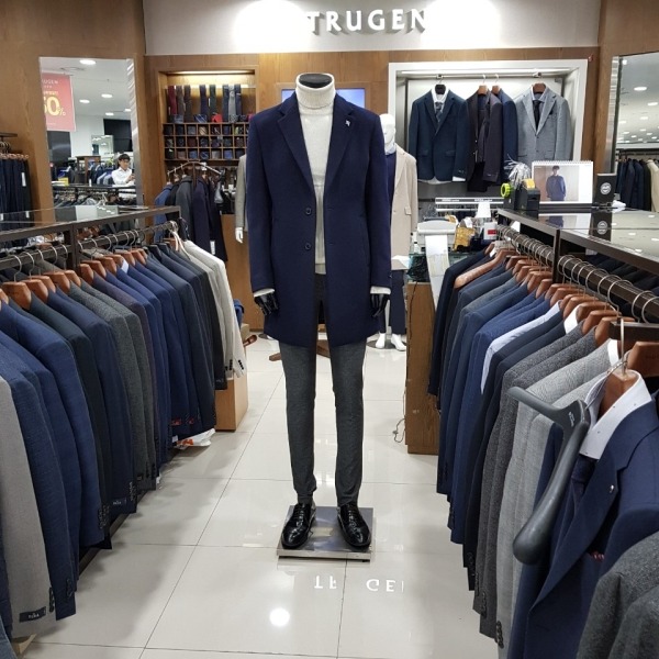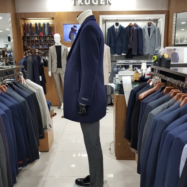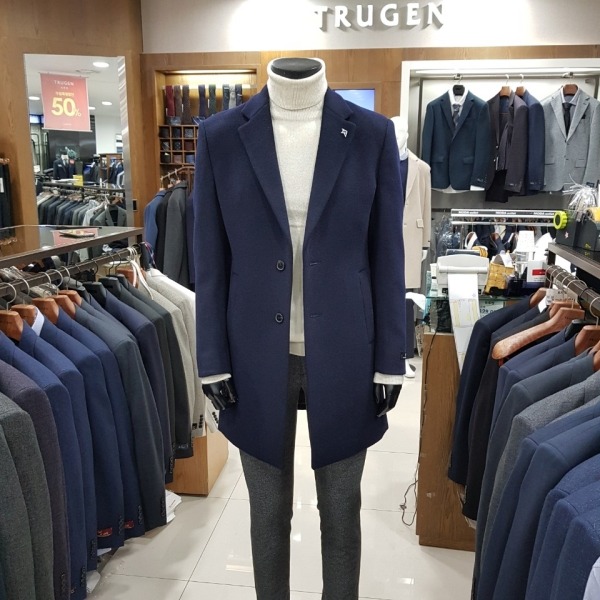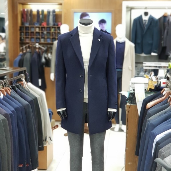 기본 네이비 컬러에 길이감이 좋은 하프 코트입니다.단정한 느낌의 모직코트로 활용도가 좋은 상품입니다.