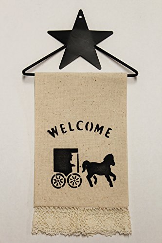 Welcome Tea Towel and Wrought Iron Star Hanger - Hand Made By Amish