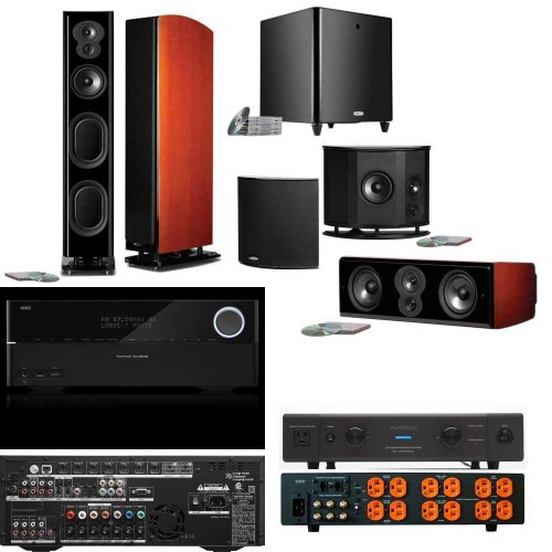 -. Feature : "You Will Receive: 2 Polk Audio LSiM707 Towers-CHERRY....1 Polk Audio LSiM706 Center-CHERRY....2 Polk Audio LSiM702FX(Black Only)....1 Polk Audio DSW PRO 660 Sub(Black Only)....1 Harman Kardon AVR 3700 with AirPlay....1 Furman Elite-20PF i Ultra-Linear AC Power Source....1 Home Theater Install Kit includes 100 Feet 14.2 Gauge Wire, 24 Banana clips, HDMI Cable, Optic Cable, Sub Cable."... / "Polk Audio DSW PRO 660 Sub(Black Only) ,Real bass, compact space, no wires Our largest and most powerful Wireless-Ready Subwoofer is still compact enough to fill a big room with waves of tight bass without cramping your style. The DSWpro660wi boasts a 200/500W (continuous/peak) Intelligent Digital Amplifier that effortlessly moves a 12-inch Dynamic Balance Driver. Explosions are more explosive. Deep bass effects are more subterranean. Bass respo... / Harman Kardon AVR 3700 7.2-channel AV Receiver-125 Watts per channel-Built-in Wi-Fi networking capability-DLNA 1.5 certified connectivity-HARMAN Music Manager (available as a free download)-AirPlay-EzSet/EQ calibration... / "Furman Elite-20PF i Ultra-Linear AC Power Source For over 33 years, Furman has pioneered the development of AC power products for the most demanding audio, video, and broadcast professionals. Though the need for pristine AC power is nothing new, the Elite-20 Power Factor i's technology and its unique implementation are revolutionary and without peer. The extreme AC demands encountered in the professional audio / video arena have required t...