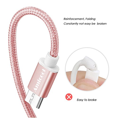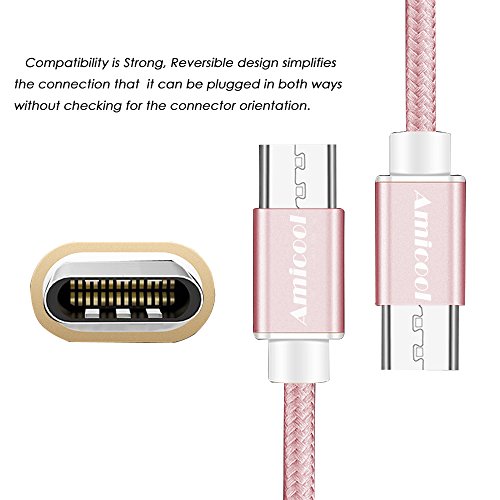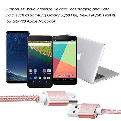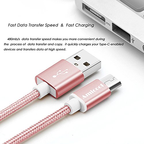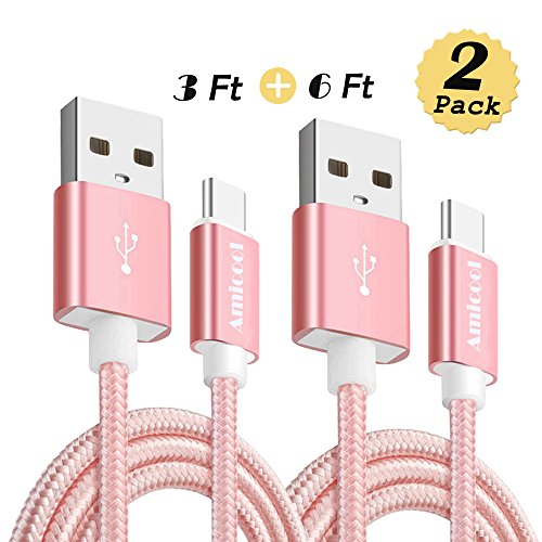 Amicool USB Type C Cable to USB 3.0 Cable Nylon Braided Sync Cord Combination (2-Pack 6ft/3ft) for Samsung Galaxy S8/S8 Plus, Nexus 6P/5X, Pixel XL, LG G5/V20,Apple Macbook and More (Rose Gold)