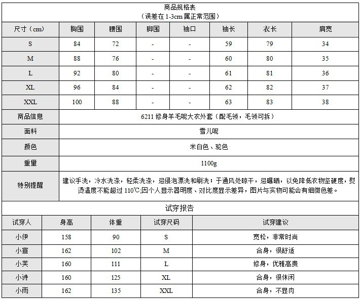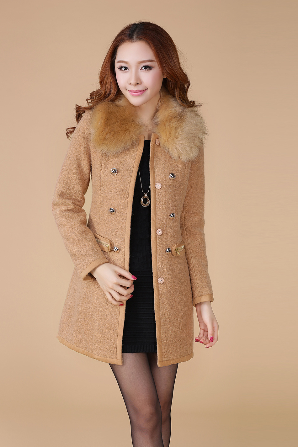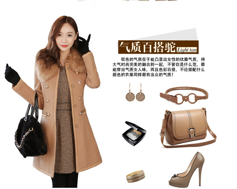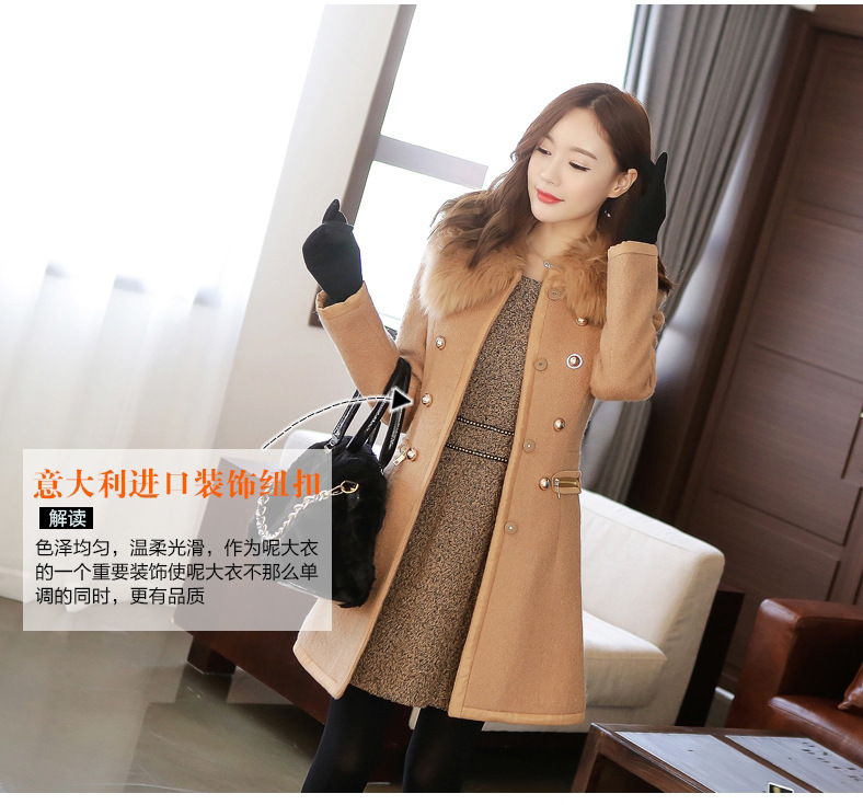 名称:6211修身羊毛呢大衣外套(配毛领,毛领可拆)