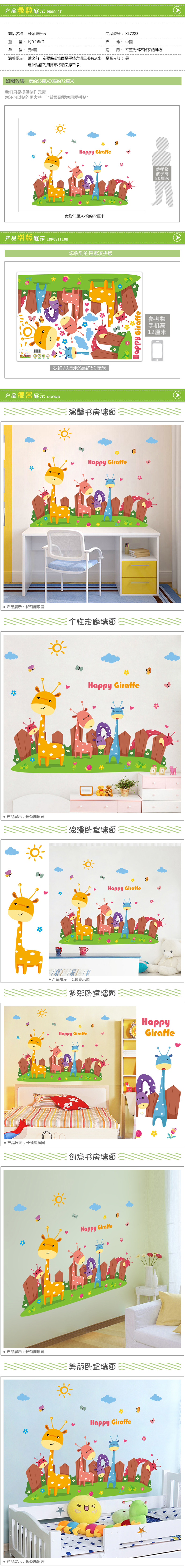 长颈鹿乐园子卡通动物自粘墙贴画儿童房幼儿园学校卧室墙壁贴纸