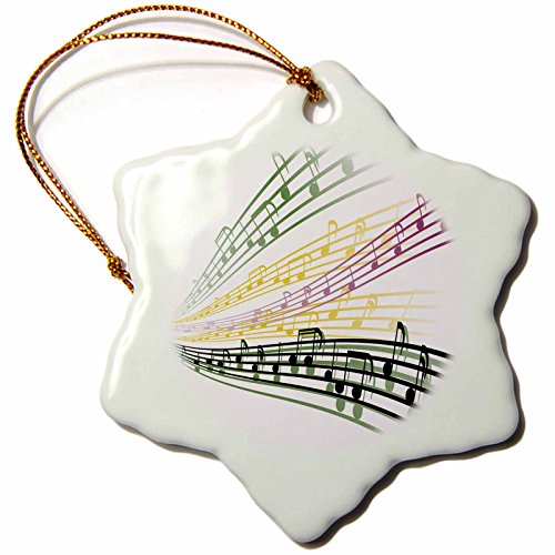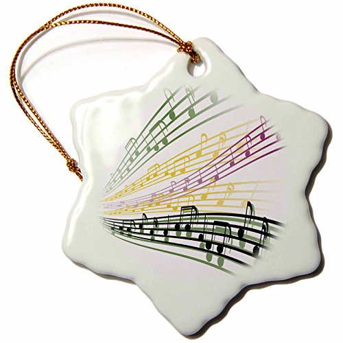 3dRose orn_115364_1 Colorful Musical Notes Musician Music Lover Design-Snowflake Ornament, Porcelain, 3-Inch