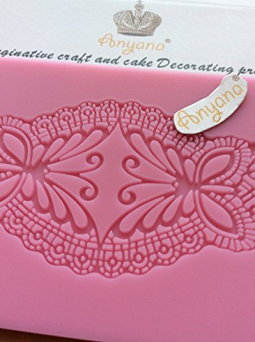 - √ Anyana Vintage patterns edible butterfly lace ornamented in the refined Art Nouveau style of Swiss lace. Stunning silicone imprint Mould and sugar Gum Paste mat . Beautiful intricate fondant impression lace, and detailed drawings for fondant cake decoration, cupcake decor, clay crafting, scrapbook projects decorating etc.
