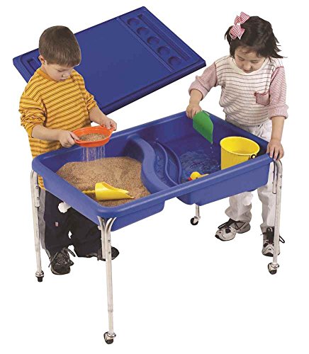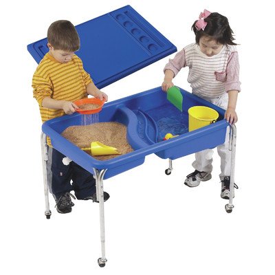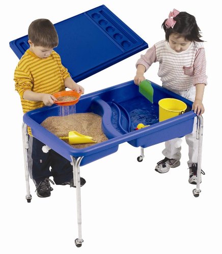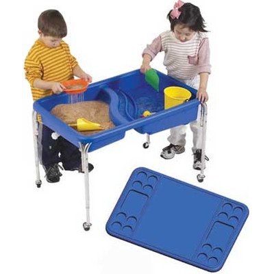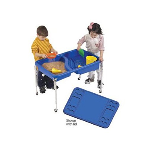 Studio : Children's Factory Publisher : Children's Factory Binding : Toy Product Description For indoor or outdoor use, this table has a bottom textured with fish, crabs, and starfish. Two basins each have a drain. The blue tub is supported by a sturdy, steel frame and has casters (2 locking and 2 non-locking) on all four legs for easy mobility. Lids and tables not included or together as a set. 36 inches. L x 24 inches W x 8.5 in. H Tub. 18 inch high legs. (22.7 lbs). 0